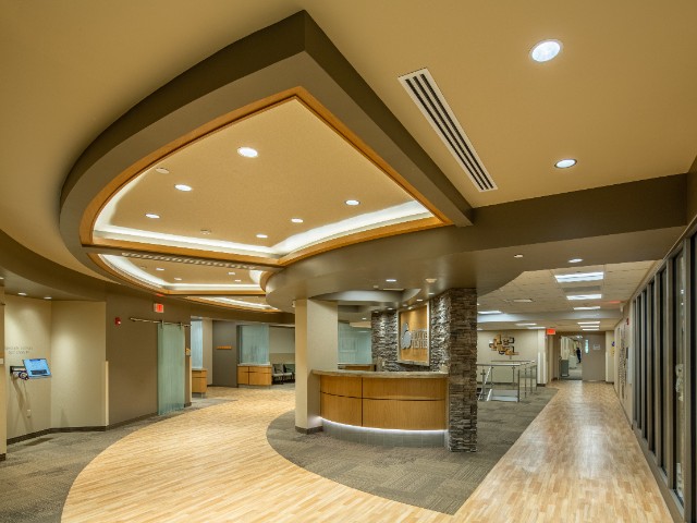reception, exam rooms and expanded areas for orthopedic and physical therapy.